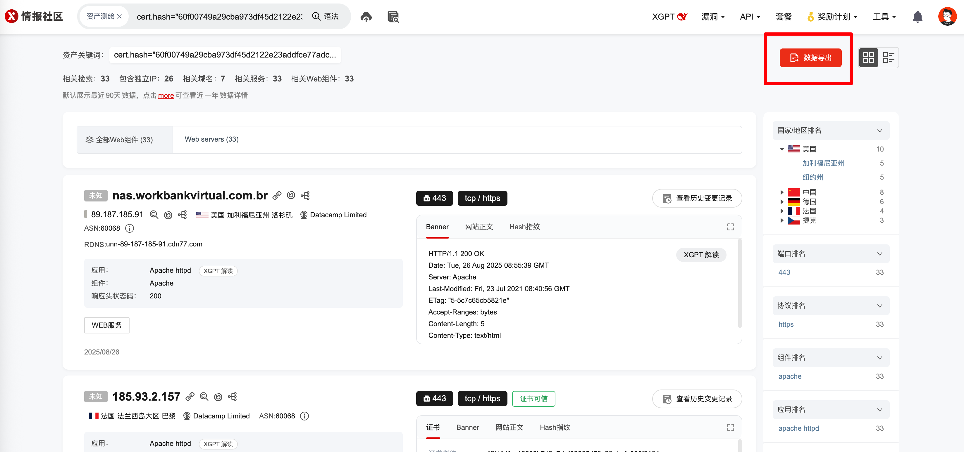 在微步(或 zoomeye、shodan)可以搜索到全部使用此证书的资产: